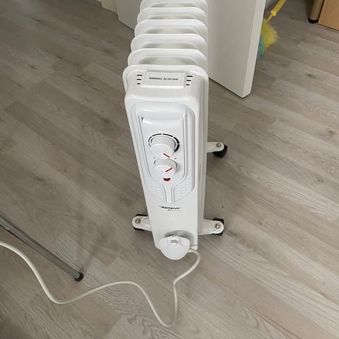 Olieradiator, Næsten ny radiator, den er brugt én gang i campingvogn hvor den er meget praktisk grundet størrelsen
