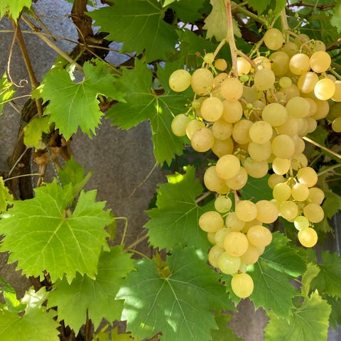 Vinstok , Vin Grøn Drue, 13 år gammel og rustik Vin. Grøn drue. 2 m høj og laver lang lang fler meter espalier. Top stand og sund plante. Skal graves op.