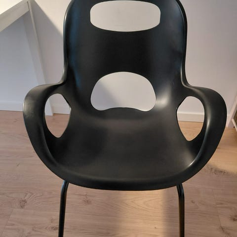 To spisebordsstole, Plastic og aluminium, Umbra, b: 58 l: 52, Oh Chair. 2 stk. sorte med grå pulverlakerede stål ben. Designed by Karim Rashid.