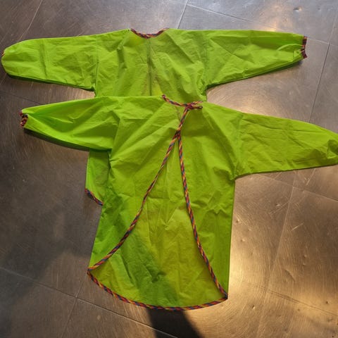 Andet, Forklæde, Forklæde. Især egbet til mudderkager fra sandkassen. Med elefant, udskåret græskar og flodhest. Fra ca. begyndelsen af 1980erne.
