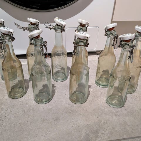 Flaskerne kan sikkert stadigvæk bruges til øl eller cider hvis de får nye Gummi pakninger.