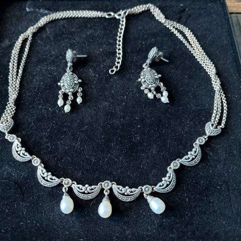 bestående af 3 delt armbånd i sterlingsølv mrk. 925s Arleth , halskæde kun mrk. 925s.