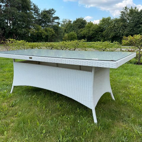 Havebord, Glad plade og metal og flet, Pæn glas ruflet have bord retro længde 158cm bredde 98 cm