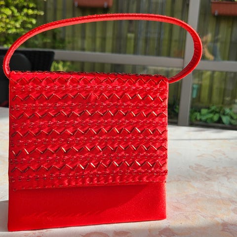 lille håndtaske i metal med blomster, glitter og similisten i lyserød. Aldrig brugt. 10x19x5cm.