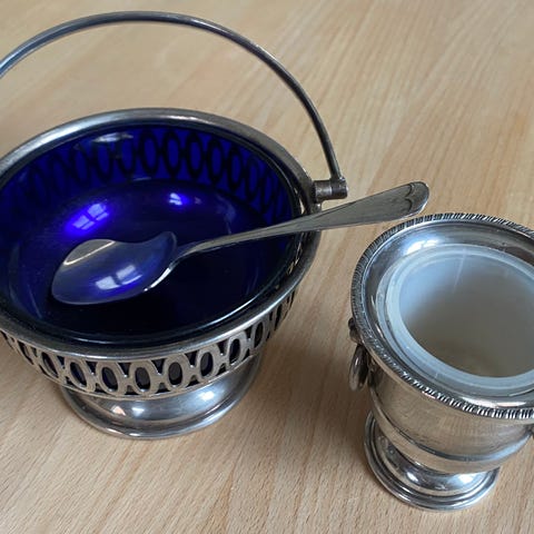 Frugtskål, English silver House, I sølvplet fra starten af 80’erne, har aldrig været brugt, i original kasse. Med aftageligt håndtag. Kan sendes.