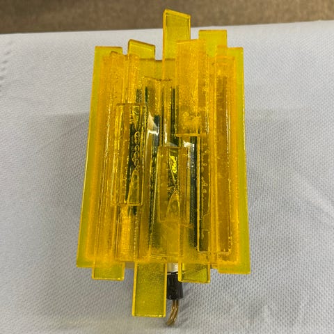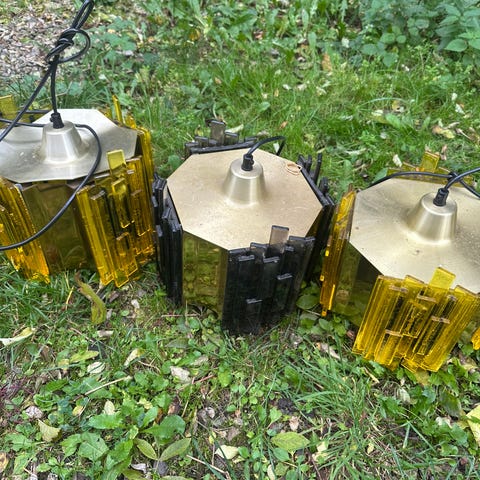 Den aflange lamper kan købes med gul eller orange front.