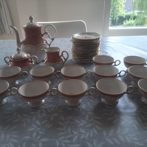 Rudolf Wachter for Bavaria testel , Silver coated porcelæn, Der er 5 sæt i forskellig stand. Sælges samlet eller delt. 100kr sættet.