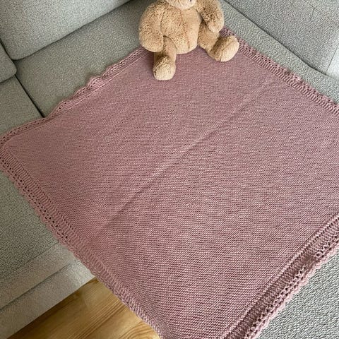 Babytæppe, NYT Babysvøb, Sandfarvet, Babysvøb i 55% bomuld og 45% akryl. Maskinvask på 40°. Str. 100x115 cm. Strikket i hjem uden dyr og røg. Vasket og klar til brug. Sender gerne.