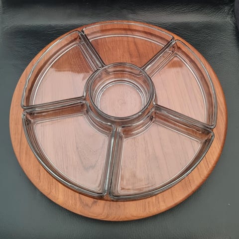 Glas, Kabaretfad, Digsmed, Rundt kabaret fad med 3 glas fra Digsmed sælges.