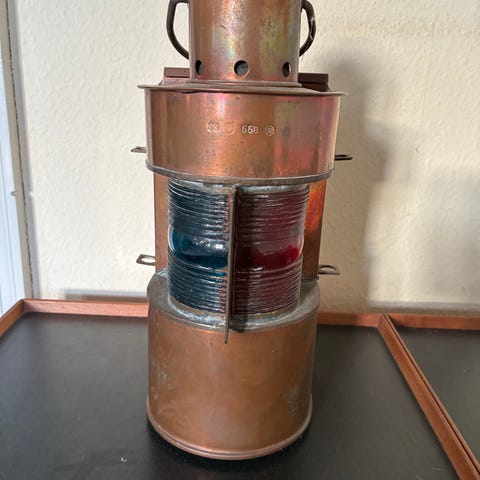 Meget Smuk gammel skibs lanterne med gammel fatning til pærer sælges