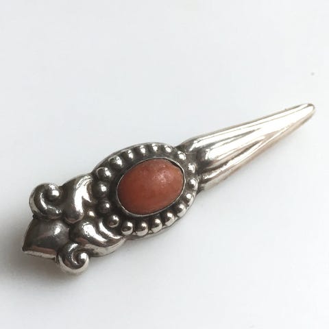Broche, forsølvet, Jacob Hull, Med grå/lilla sten. 73 mm i diameter