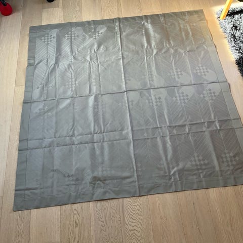 Georg Jensen dug med julemønster i grå farve. Dugen er 140 x 140 cm. Den kan bruges til forskellige borddækninger. Den kan også bruges som juletræstæppe.