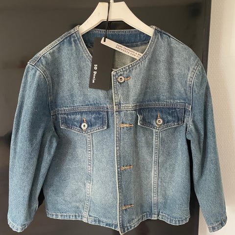 Cowboyjakke, str. 38, Fransa, Demin, Ubrugt, Helt ny cowboyjakke fra Fransa str 38 (stor i størrelsen), har købt den til halv pris (oprindelig pris 700kr). Aldrig brugt, prismærke stadigvæk på.