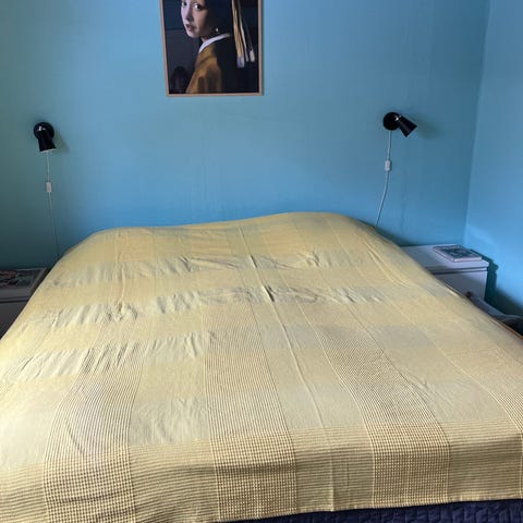 Sengetæppe, Bomuld, Hjemmenørklet sengetæppe. Rødt . Mål ca 280 x 180 cm . foretrækker afhentning