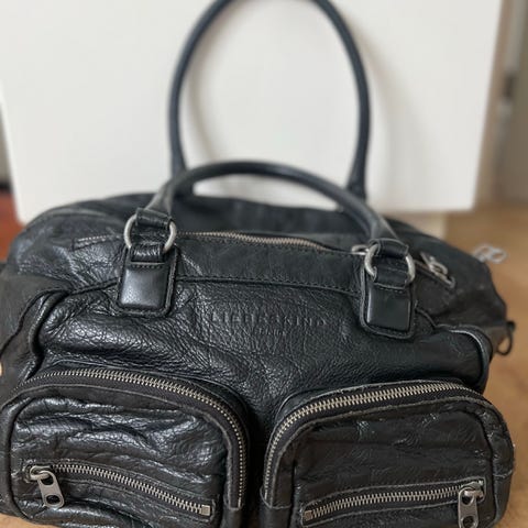Mobiltaske, Liebeskind Berlin, Mobiltaske af sort skind med lang justerbar strop 64 cm max, guld hardware og extra lomme bagpå fra ikke-ryger hjem sælges