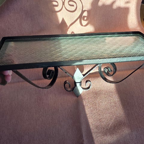 Smuk hylde i metal og glas sælges.