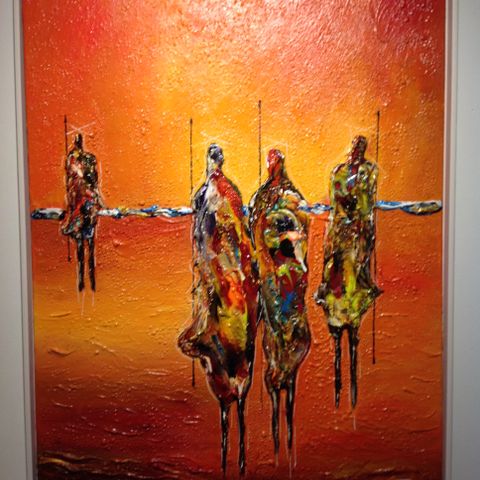 Akrylmaleri, Leif Rabøl, 60x80cm. " Masaier på vagt " ( Nr. 153 )
