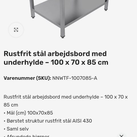 Køkkenbord fra storkøkken, Rustfrit stål, Kvalitet stålarbejdebord og bageri / smørrebrødsbutik, med understel/ben