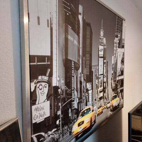 Der er ikke glas i billedet fra Gudenådalens Ungdomsskole, men er i original ramme.