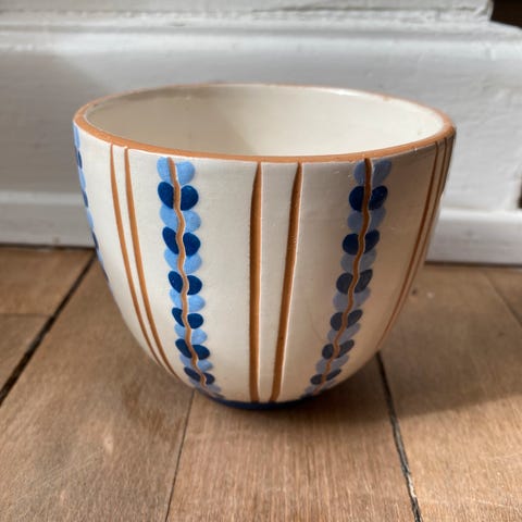 Vase , Haunsø, Haunsø vase - naturfarvet med blå blomsterranker.
