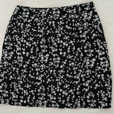 mini nederdel, str. 38, BDG, Hvis med sorte striber, Bomuld, God men brugt, Rigtig fin hvid med sorte striber mini nederdel fra BDG. Den har stræk i. Den er 43 cm lang og 66 cm i livet, der er elastik i livet. Sidder rigtig flot på.