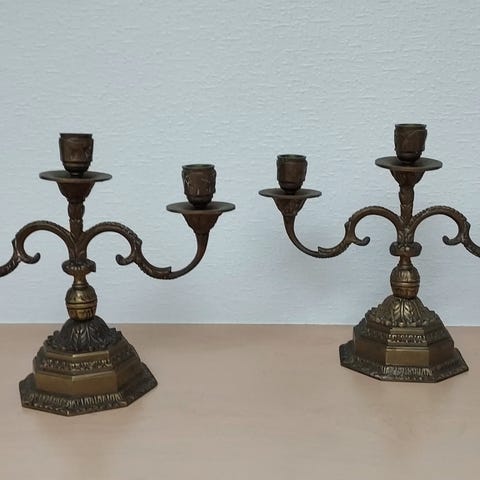 Vintage lysestage af bronze og messing. Læs beskrivelsen