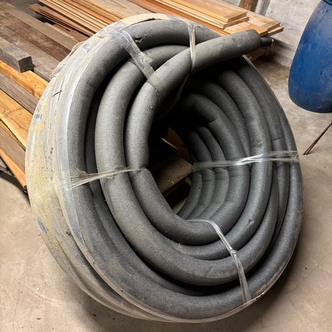 Preisoleret, enkelt 32 mm. 1x12 meter sælges. Kan deles i 2x6 meter. Velegnet til feks varmepumpe. Helt nye og har ikke været monteret. Fejlkøb. Rullen måler ca. 2 meter i diameter.