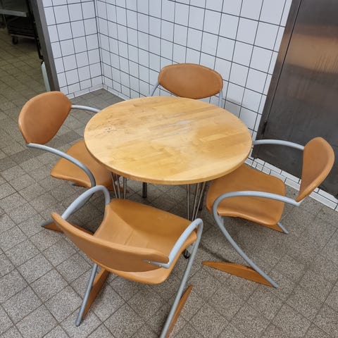 Nogle af stolene bør limes og alle bør ombetrækkes.