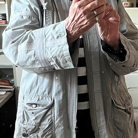 Jakke, Active Touch, str. 44/46, Sort jakke med gennemgående lynlås og hvide staferinger. Høj i halsen. Mrk. Active Touch. Størrelsen er angivet til L og str. 44/46. Men den svarer mere til L og str. 40/42. Dejlig let og luftig men beskytter samtidig mod vind. Har lynlåslomme på ryggen til opbevaring af f.eks. telefon eller bar, så den egner sig f.eks. godt til cykling, løb eller gåtur. I fin stand. Super kvalitet til prisen. Fra ikke ryger hjem.