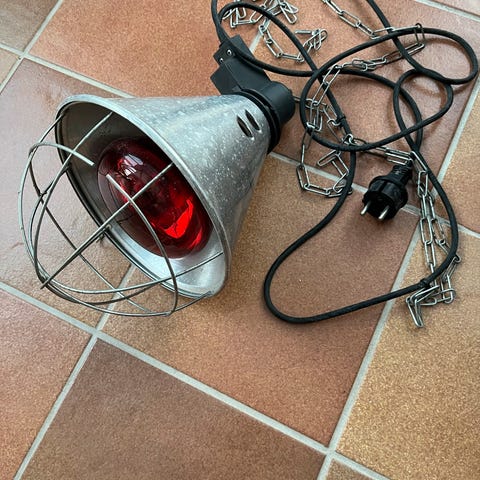 Varmelampe, Pergolux, 2000 W, Antrasit. Aldrig brugt, pakken kun åbnet grundet nysgerrighed. Den fulgte et køb hos Pergolux, da deres andre varer var meget forsinkede. Jeg må indse at jeg aldrig får den brugt.