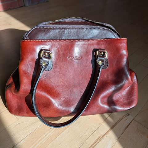 Håndtaske, Vera Pelle, Flot og ny lædertaske i mørk bordeaux farve. Brug den enten som håndtaske eller skuldertaske.