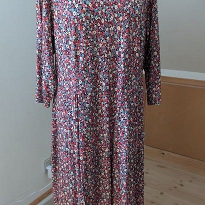Andet, Kjole, Du Milde, str. 42-44, Laks/hvid, Viscose, Næsten som ny, Flot Du Milde kjole, med bærestykke og korte ærmer. Blomstret i laks/orange/hvide farver.
