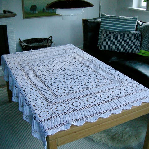 2 Super skønne retro/vintage duge - bordskånere mm i hæklet garn på ca 34 x 34 cm