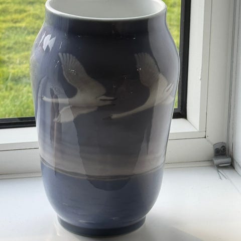 Herend Hungary porcelæn, motiv: Fugle og sommerfugle, Hånd malet porselæn vase 25 cm.fab nr7026 20 35
