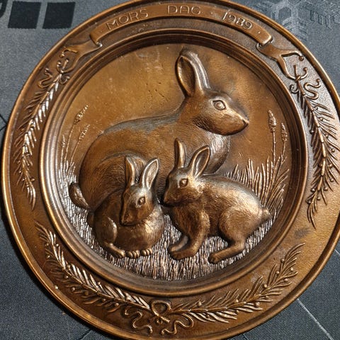 Platter, Kobber, 1972, Mors dags platte i kobber, 1972, samt platte med Den lille Havfrue.