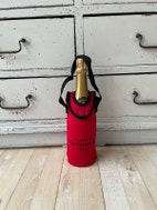 Champagne kølepose, HELT NY, Taittinger - køletaske, Hold din champagne afkølet med denne HELT NYE Taittinger Champagne Wine Bottle Cooler Bag / kølepose. Den lækre røde køletaske er perfekt til at bære din flaske champagne, rosé eller hvidvin til picnics, fester og romantiske udflugter. Køleposen holder din flaske afkølet, og så er den samtidig et rigtigt samlerobjekt fra det hæderkronede champagnehus Taittinger i Reims i Champagne, der er svær at finde i handlen.