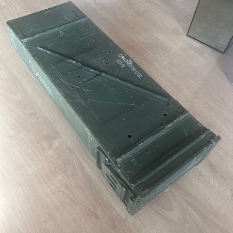 Militær, transportkasse fra Hangarskib, Militær transportkasse fra USAF ca 1970, stål/alu og måler 56x45x48 cm.Har indeholdt NAVY USAF gun bore sighting kit AN/GPM-14. Velegnet til sofabord/opbevaring/barskab eller siddeplads. Pudebetræk fra US Army medfølger !! Skal afhentes...