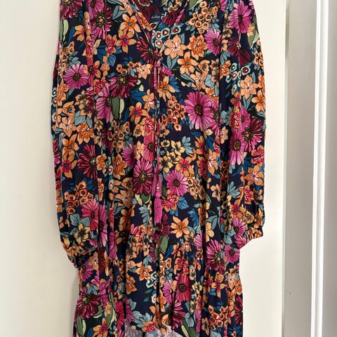 Tunika, Du Milde etc, str. XL, Multi efterår, Viscose, Næsten som ny, Smuk du Milde etc kjole /tunika, model Viola i blomstrende efterårsfarver og v-udskæring. Elastik i ærmerne og knaplukning i nakken. Brugt få gange og er i perfekt stand uden brugsspor. Nypris 900 kr.