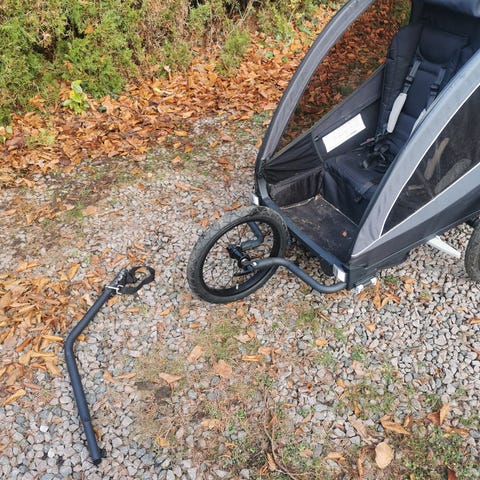 Uden tilkoblingsdele og stang . Kan foldes sammen. Godkendt til 40 kg. Velegnet til børn: 18 måneder til 7 år. Plads til et barn. Siddebredde 55 cm. Fra front til ryg af vogn 90 cm. Nypris 5499,- god stand og kvalitet.