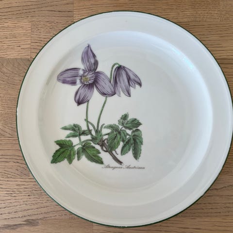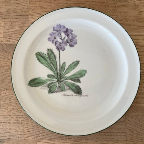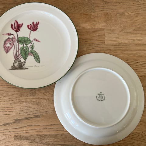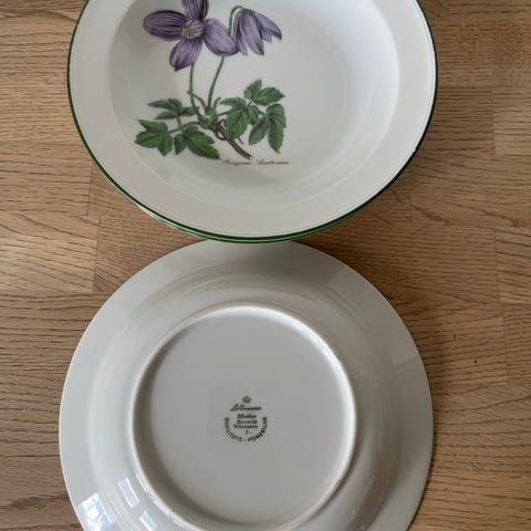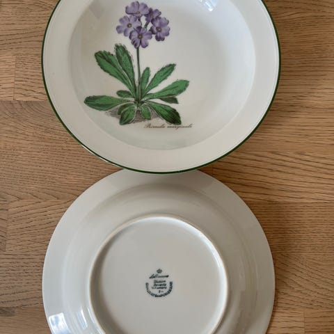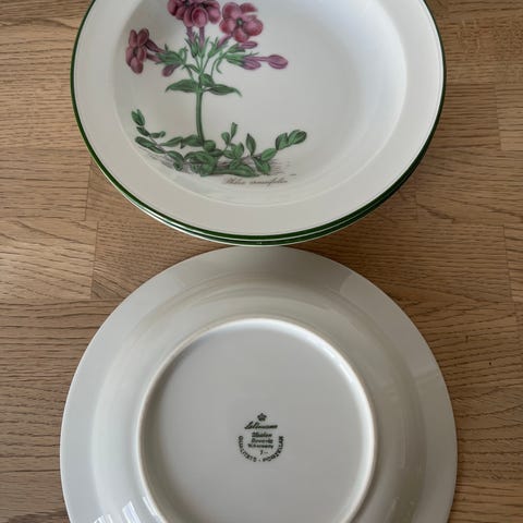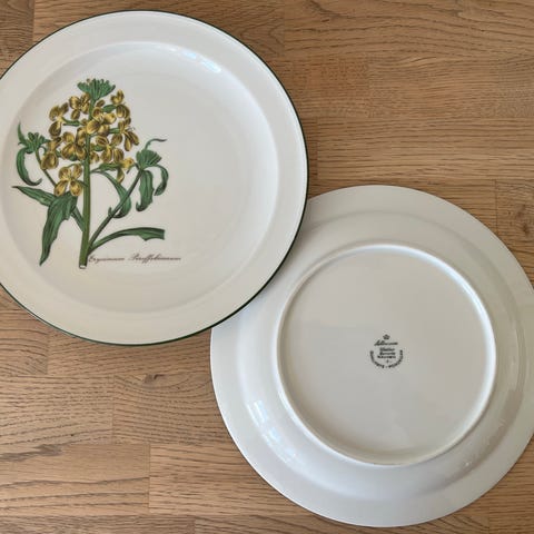 1 Tallerken har en lille ujævnhed i glasuren øverst på kanten. Se billederne i annoncen.