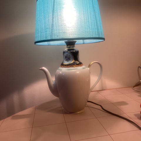 Anden arkitekt, Kaffe1, bordlampe, Mariage mellem lampe og ældre kaffemaskine