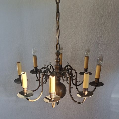 Lysekrone, Kirkekrone, Vintage kirkekrone i messing med 3 arme og tilhørende baldakin.