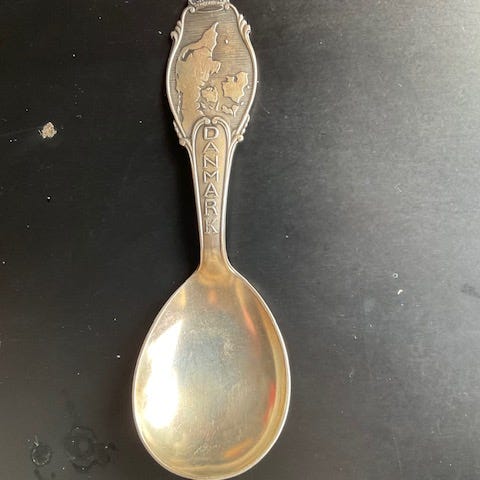 Sort sløjfe med broderet Kronprins Frederik. Den er gammel - jeg vil tro den er fra det år, hvor Kong Fredrik er født og der er et lille “brud’ i kanten. Fundet i gemmerne…
