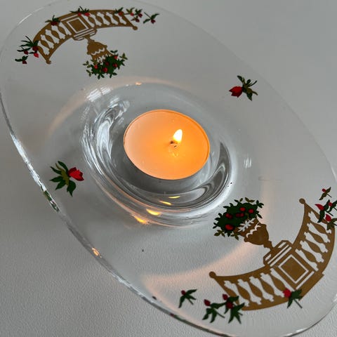 2Jule fyrfadstager i glas med messing lign. holder, Design Charlot design sælges samlet. Passer med fyrfadslys.