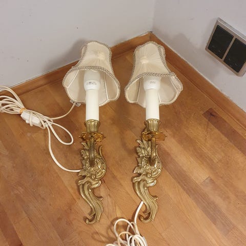 Væglampe, Ukendt, 2 stk. messing lampetter med dekoration