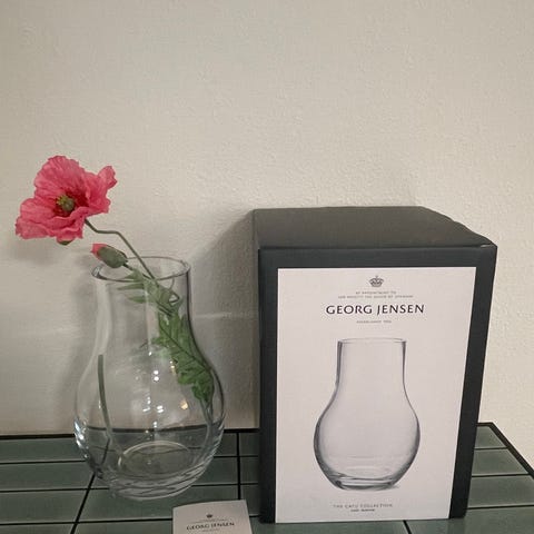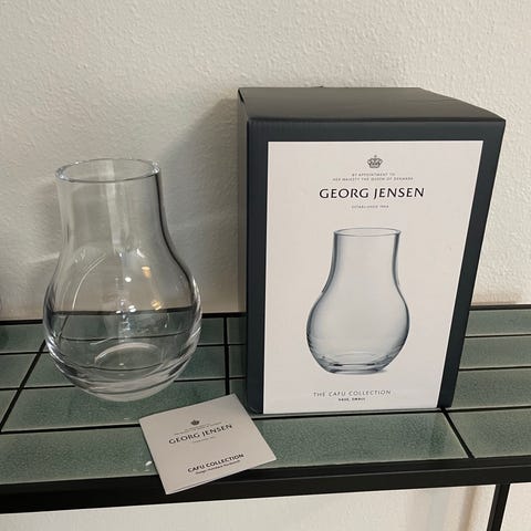 Vase, Georg Jensen, CAFU vase i blåt glas, design HolmbäckNordentoft. Str mellem.