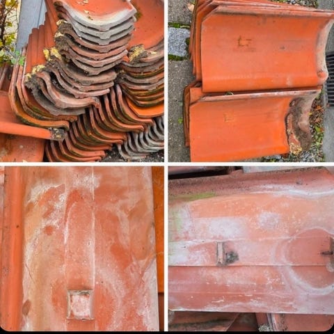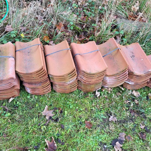 Vingetegl , Frederiksholm 1974, Ca 100 m2 røde vingetegl fra Frederiksholm 1974. De har ikke været understrøget. Pris er kr 10,- pr tegl - der er ca 2.000 stk.