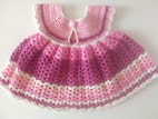 Kjole, Hæklet babykjole, hjemmehæklet, str. findes i flere str., Sød hjemmehæklet kjole til baby hæklet i 100% blødt bomuldsgarn. Passer str. 3-6 mdr. Lukkes med en fin stofbetrukket knap bagpå. Fuld længde målt fra skulderen: 28 cm.