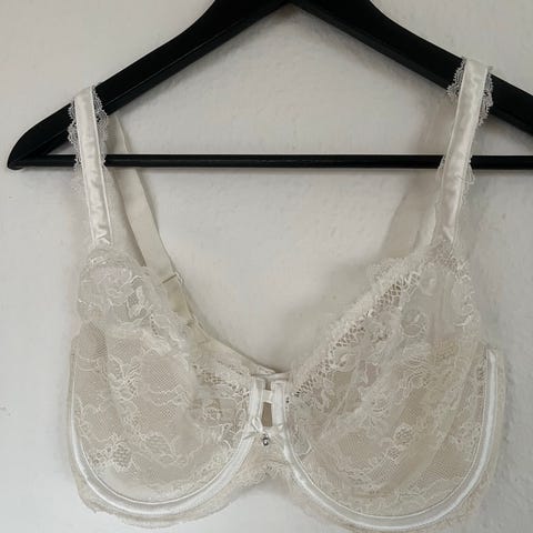 Balkonette halv cup demicup demi cup S M bøjlebh nude lys fersken rosa champagne laksefarvet hudfarvet transparent gennemsigtig glimmer glitter broderet broderi embroidery
