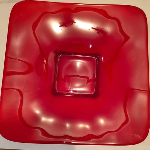 Smukt ravfarvet fad / serveringsfad / glasfad / rouladefad.
